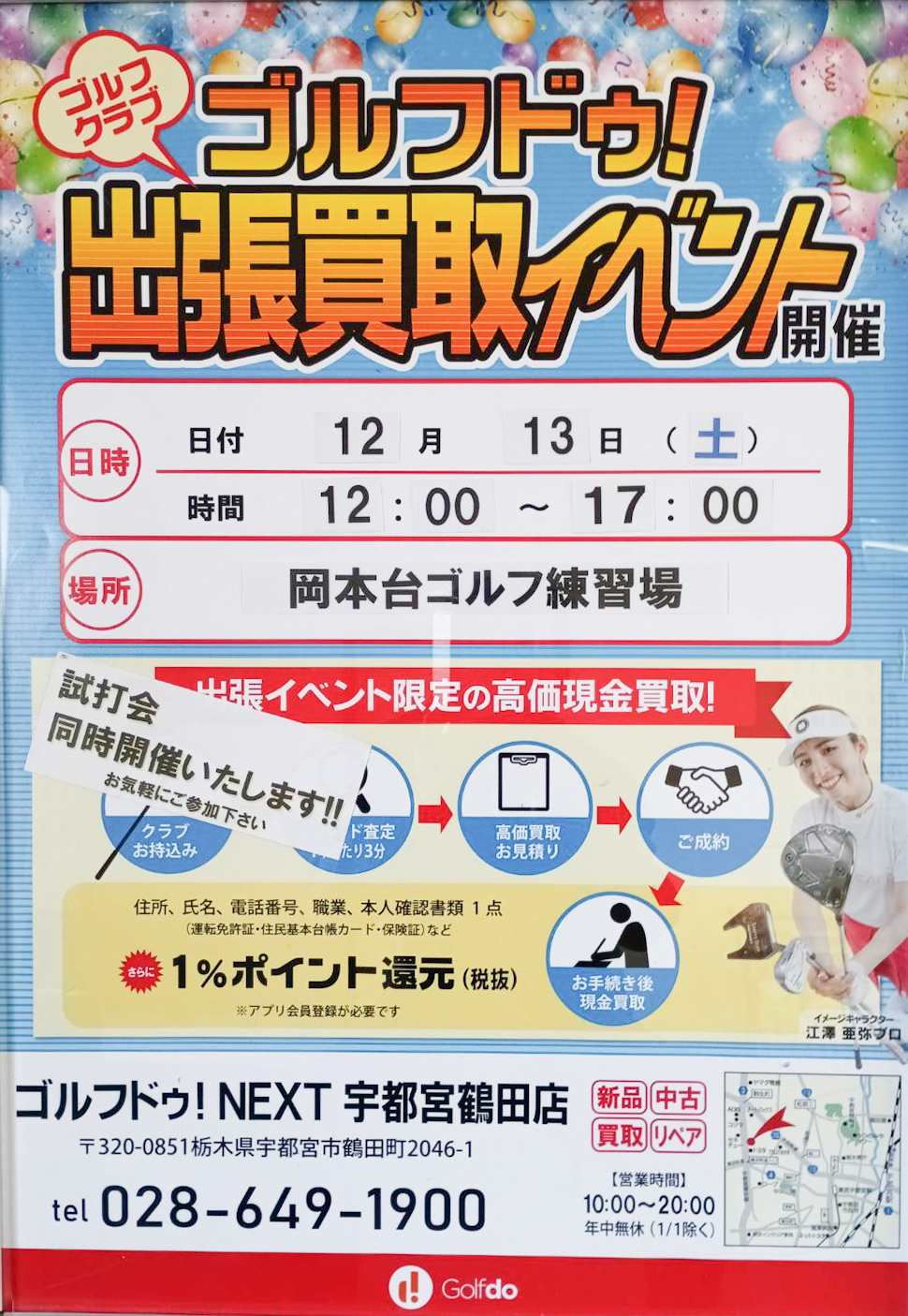 2025.12.04 お知らせ 12月試打会イベント開催のお知らせ Post Share Hatena Line RSS feedly Pin it note 記事のタイトルとURLをコピーする ゴルフドゥNEXT宇都宮鶴田店 様 日時:12月13日(土) 開催時間:12時〜17時。 ゴルフパートナー宇都宮鶴田店 様 開催日:12月21日(日) 開催時間:13時〜17時 2025年11月29日 試打会開催のお知らせ ゴルフ5宇都宮ベルモール店様 前の記事 年末年始休業のお知らせ 次の記事