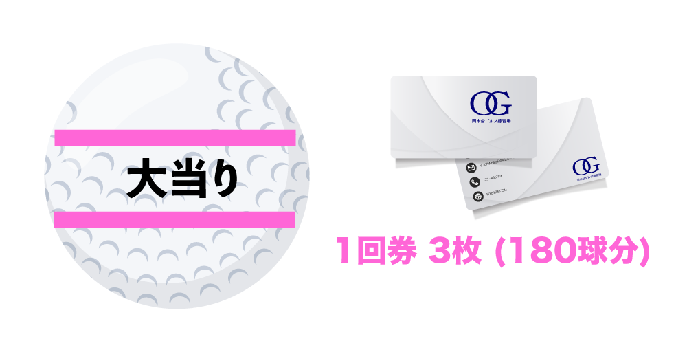 冬季、夏季限定キャンペーン 「大当たり」「小当たり」のボールが出たら、回数券プレゼント!冬期=12月〜2月、夏期=6月〜8月 夏期はドリンクボールもあります! サービス パター練習エリア プロレッスン ちょい打ち15球 スマホスタンドレンタル ゴルフクラブレンタル 冬期、夏期限定キャンペーン